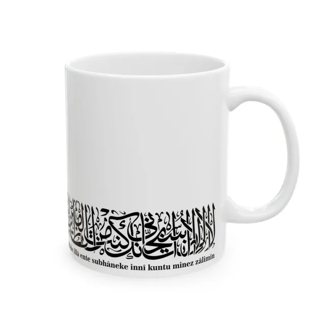 Bu özel ayet-i kerime, zarif hat sanatı ile işlenmiş minimal bir tasarımla kupa bardak üzerine uygulanarak hem estetik hem de anlam yüklü bir ürün haline getirilmiştir.