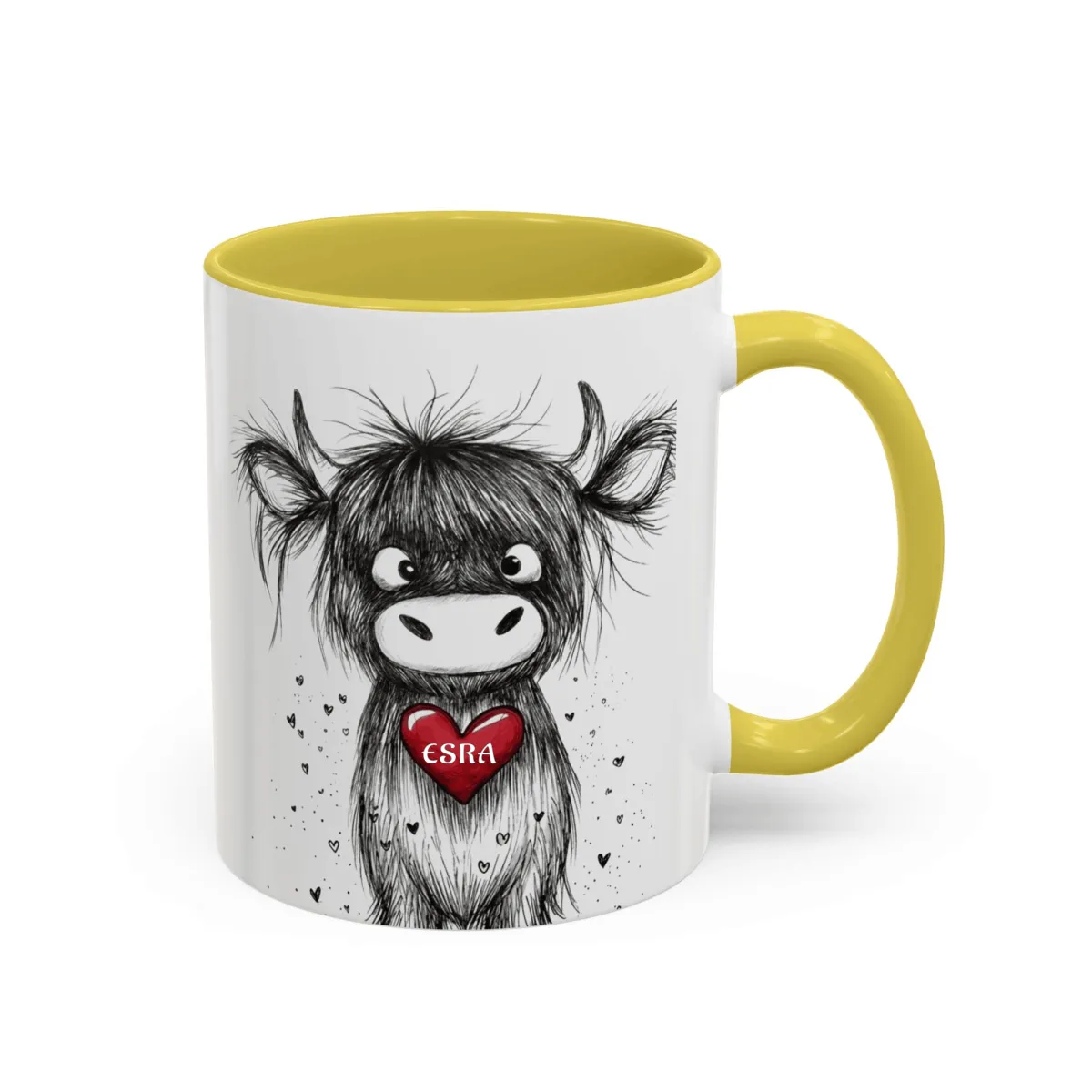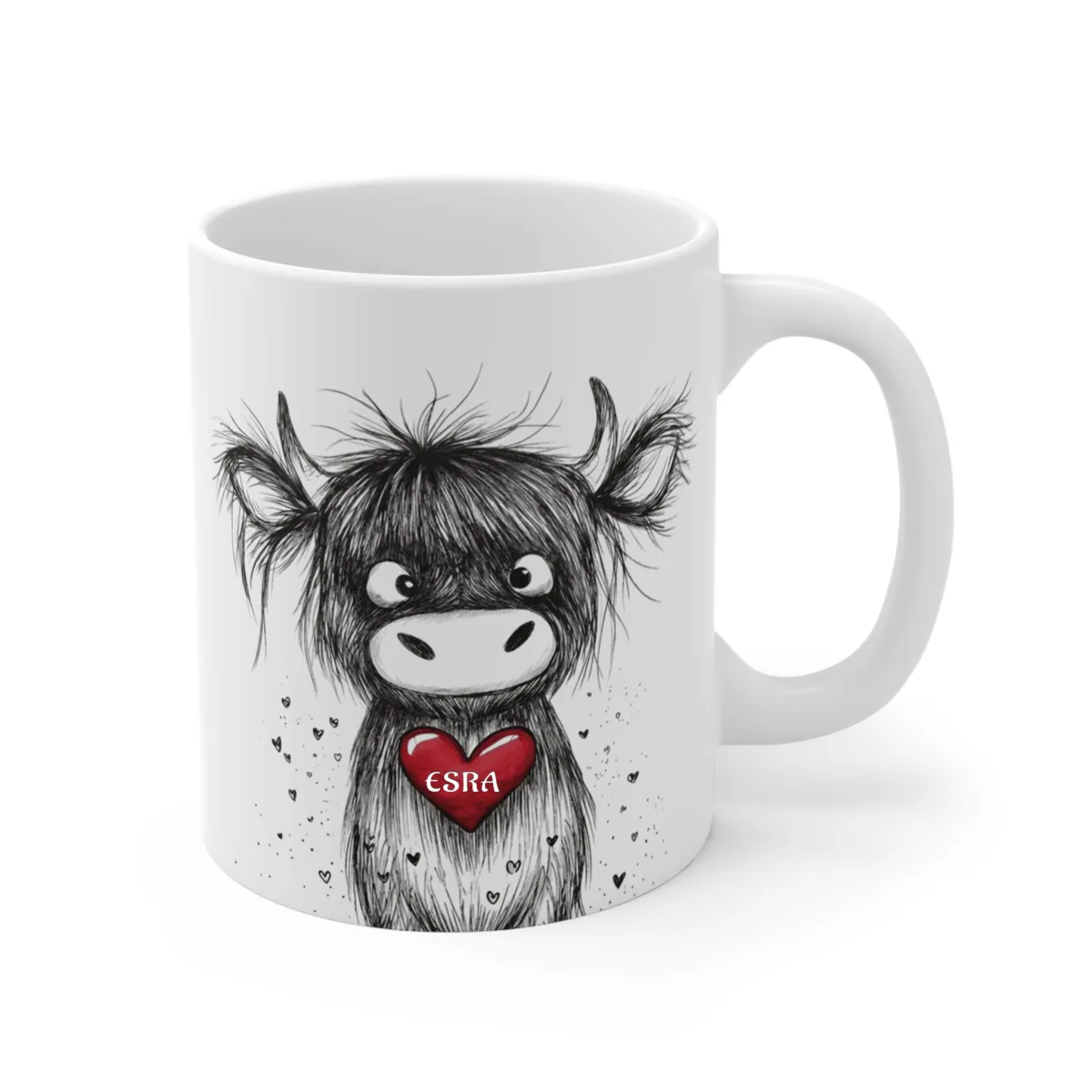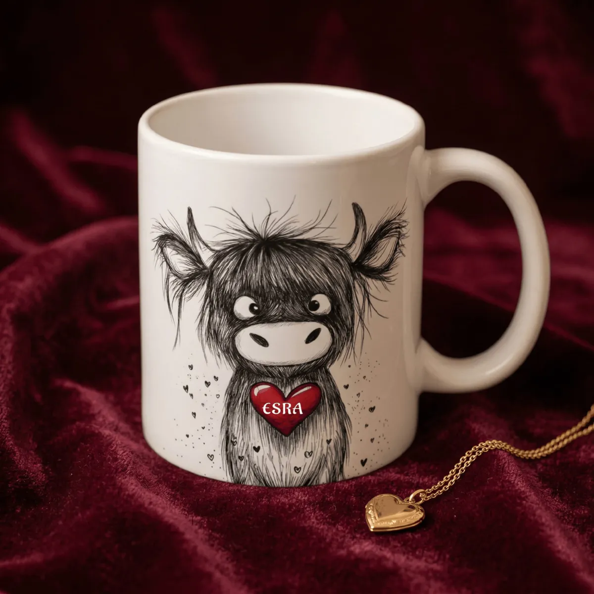 Bu özel kupa bardakta, erkek sevgilinin karakteristik olarak “öküz”e benzetildiği mizahi bir illüstrasyon yer alıyor. Ancak bu, kaba bir ifade değil; aksine sevgi dolu bir gönderme! Tasarımın en dikkat çekici detayı ise öküz figürünün kalbinde, hediyeyi alan kişinin isminin yer alması. Yani bu kupa, tamamen size özel ve anlam yüklü bir hatıra haline geliyor.